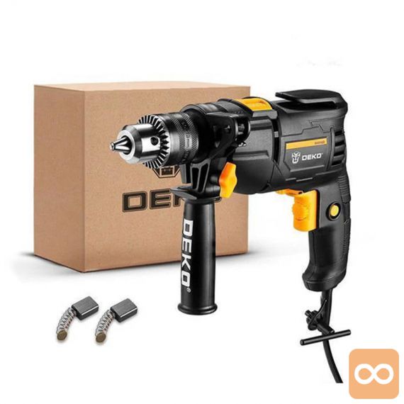 Deko Tools vrtalnik je opremljen z 710 W motorjem, tako da ga lahko uporabljate za vrtanje jekla, betona ali lesa. Ima tudi gumb, s katerim lahko prilagodite hitrost izvijača ali pa s posebnim stikalom preklopite njegovo smer v levo ali desno. Poleg tega bo zaklep sprožilca zagotovil udobje med dolgotrajno uporabo.