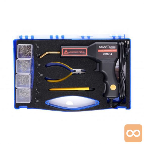 Univerzalni plastični spenjalnik Kraft & Dele se uporablja za popravilo plastičnih elementov. Popoln za profesionalce in domače DIY navdušence. Odličen komplet za popravilo plastičnih elementov, varjenje plastike in maskiranje morebitnih razpok.