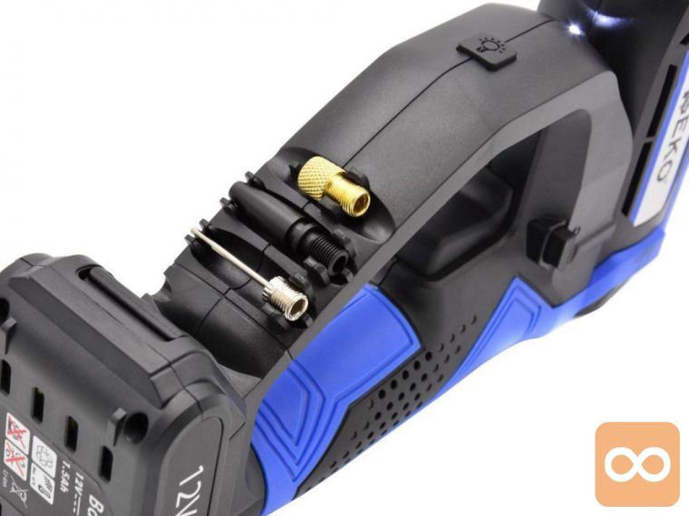 Brezžični kompresor lahko enostavno napolni avtomobilske pnevmatike, kolesarske pnevmatike, žoge, zračne postelje in še več.
