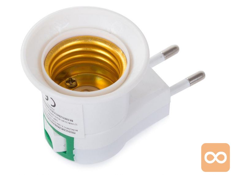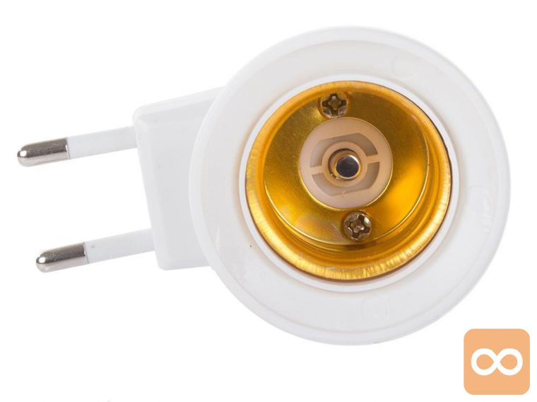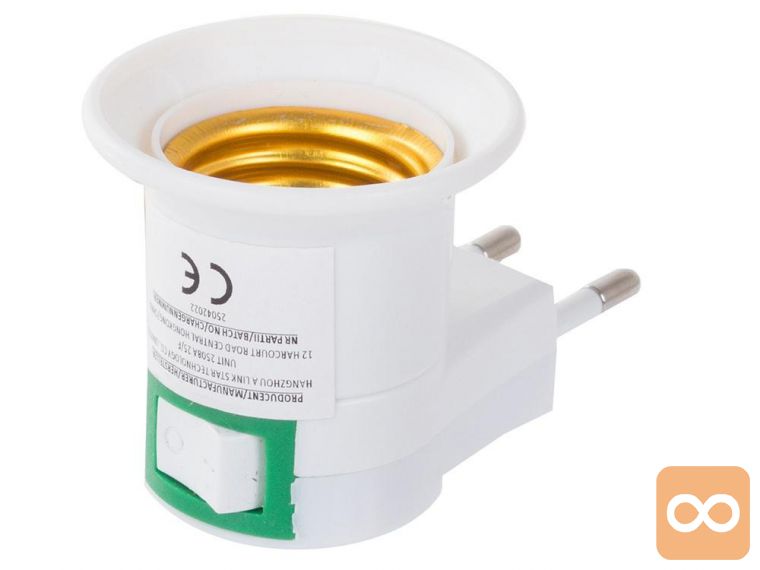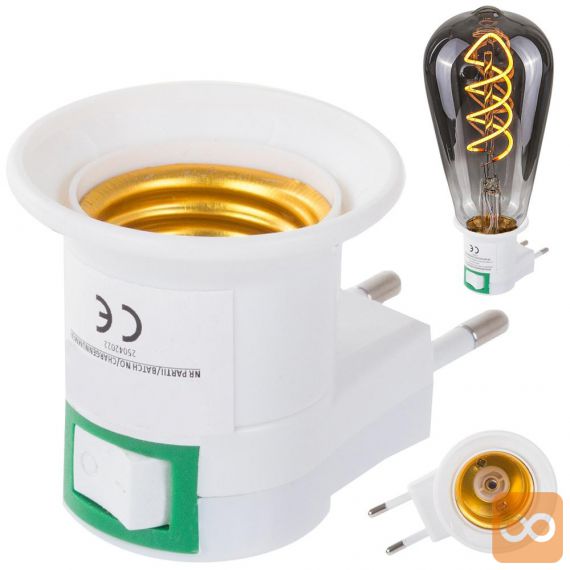 Univerzalni adapter za žarnice z grlom E27, pritrjen neposredno na električno vtičnico.