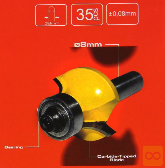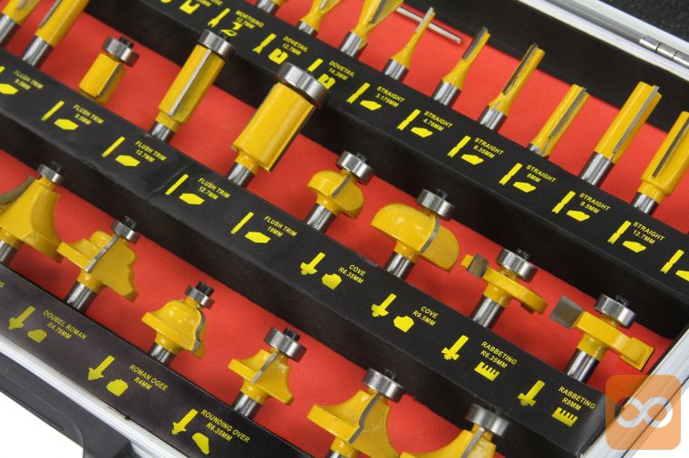 Naš komplet je sestavljen iz 35 elementov, raznolikost oblik pa pomeni, da ni treba uporabljati šablon. Rezalnik ima montažo v vreteno s premerom 8 mm, 21 rezil pa ima ležaj, ki zmanjšuje trenje in zelo trdo rezilo iz volframovega jekla.