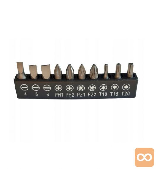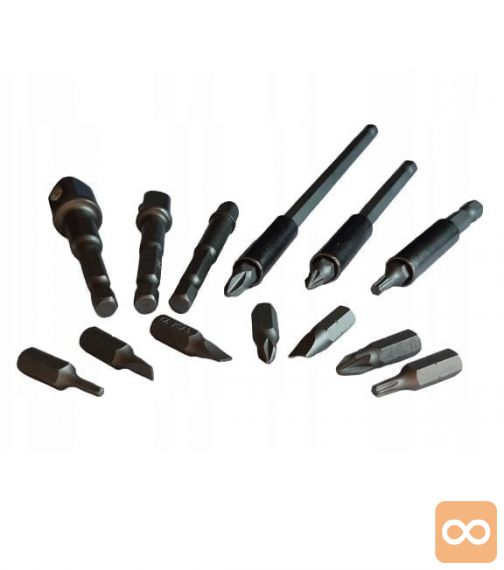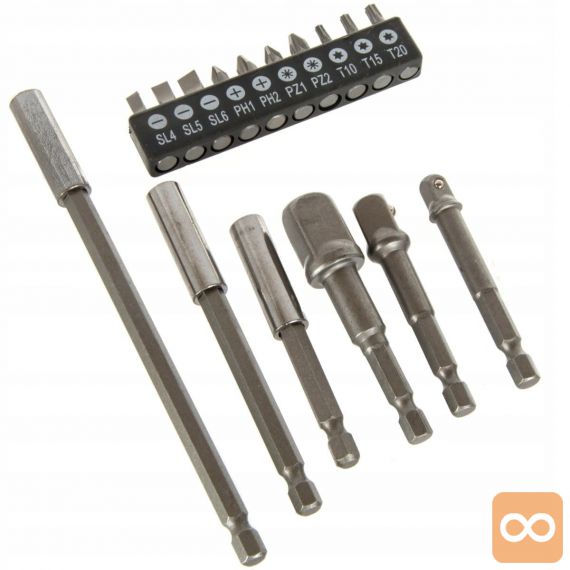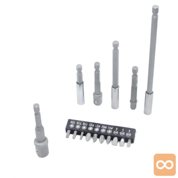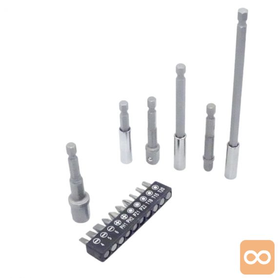 Set nastavkov za izvijače: 10 nastavkov + 6 adapterjev.