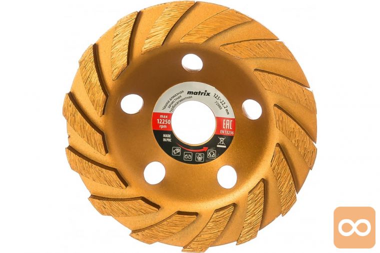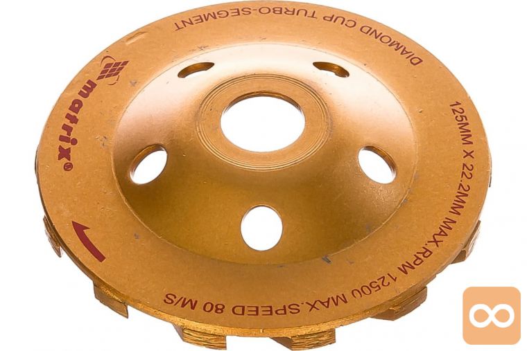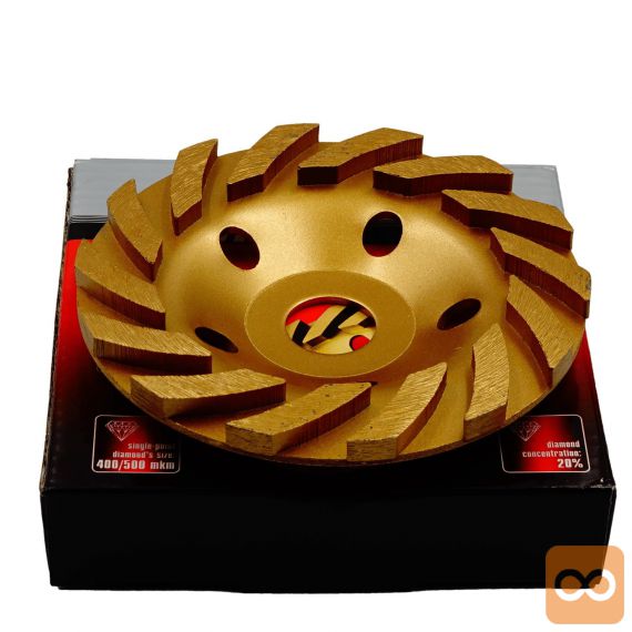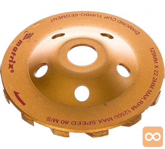 - Matrix turbo-segmentna diamantna skodelica se uporablja za brušenje betona, granita, marmorja, opeke, kamna.