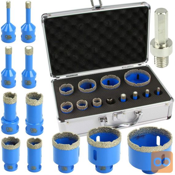 Komplet diamantnih vrtalnih žag velikosti od 6 do 68 mm.