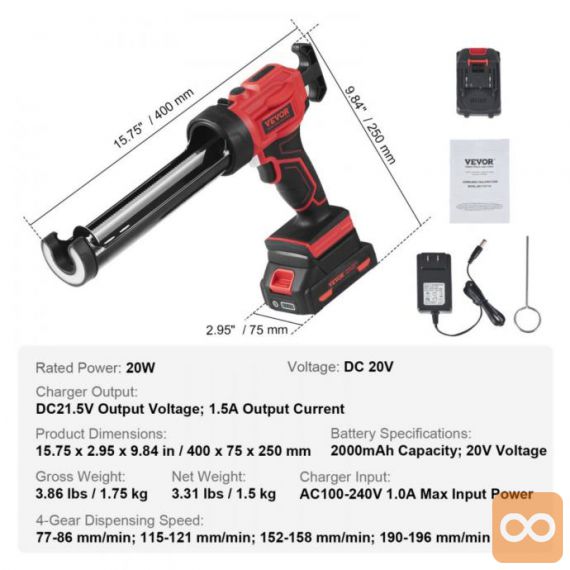 Akumulatorska tesnilna pištola za stiskanje kartuš - silikona (20W, za 300 ml kartuše, do 270 kg, 4-stopenjska nastavljiva, vključno z baterijo in polnilnikom) Nikoli uporabljena.