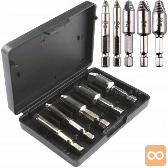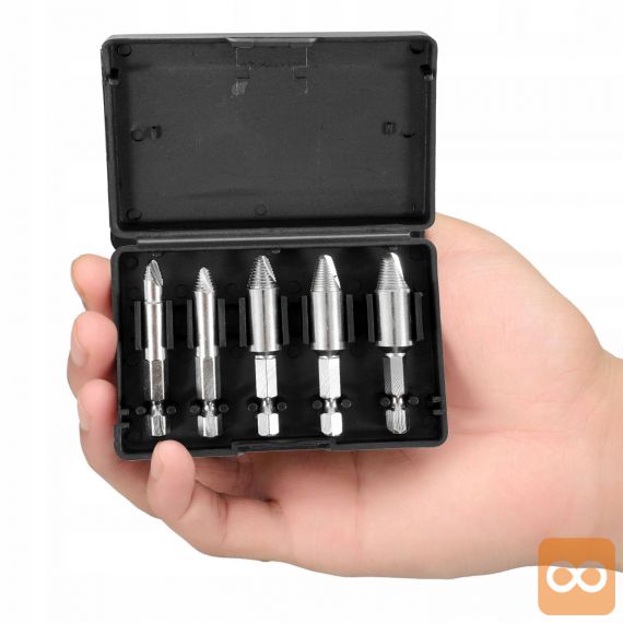 S tem 5-delnim kompletom odstranjevalcev vijakov lahko hitro in enostavno odvijete poškodovano glavo vijaka. Odstranjevalniki vijakov ustrezajo vsem vrtalnikom in vijačnikom.