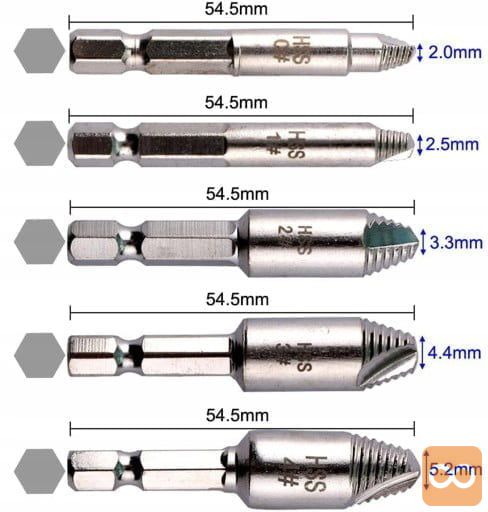 Ta praktična orodja so še posebej primerna za enostavno odstranjevanje poškodovanih in odlomljenih vijakov vseh velikosti in vrst.
