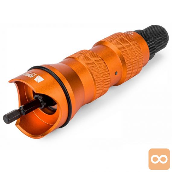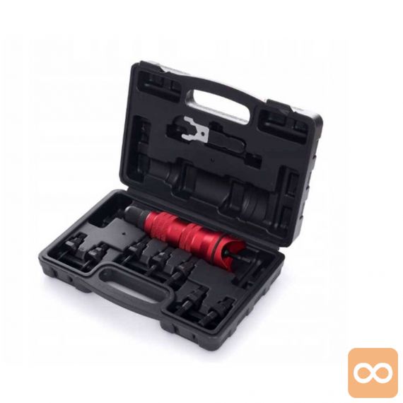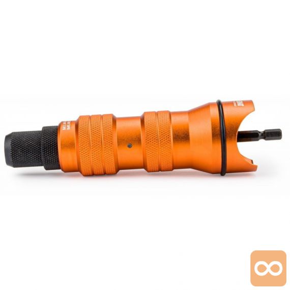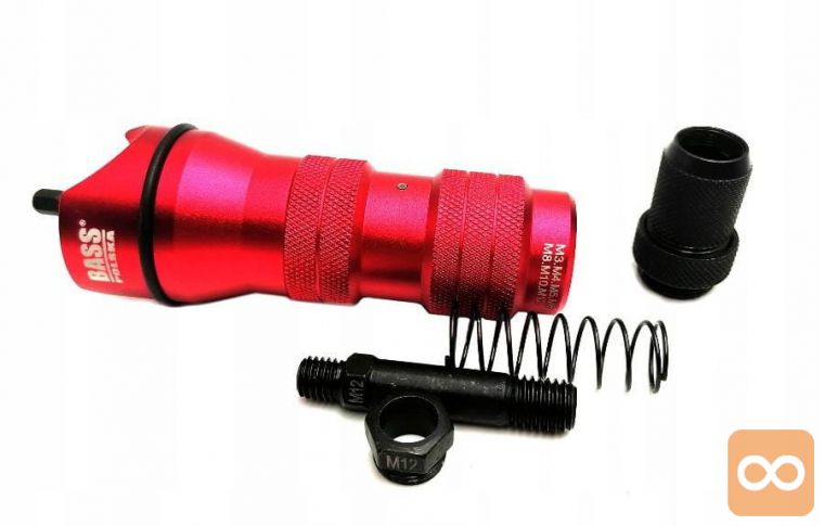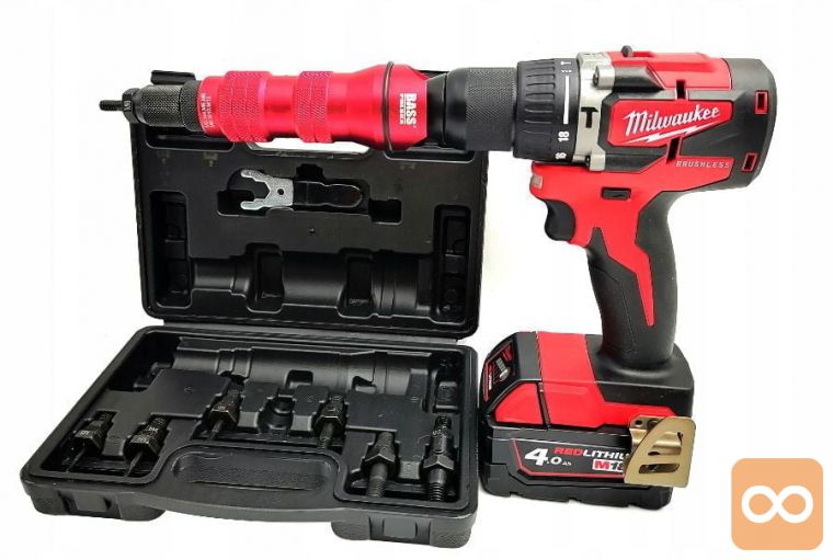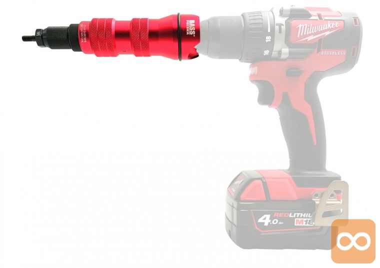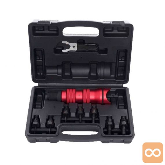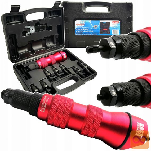Zahvaljujoč tej napravi lahko na neverjetno enostaven in hiter način izdelate pritrdilne elemente z zakovicnimi maticami . Zakovica za vijačnik / sveder je v celoti izdelana iz jekla – izjemno trdna konstrukcija. Vse skupaj je v plastičnem kovčku. Adapter ustreza vsakemu standardnemu izvijaču ali vrtalniku.