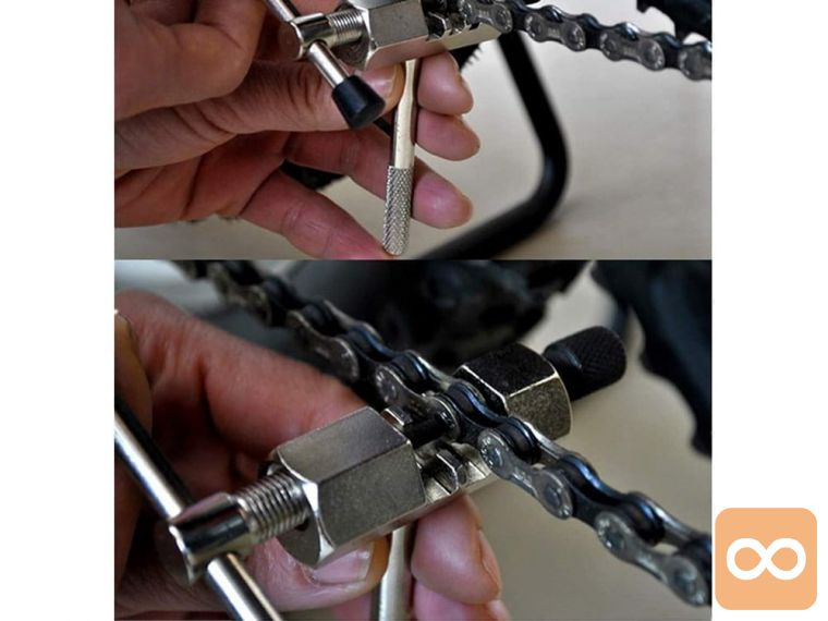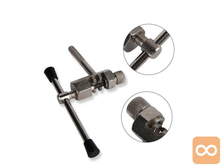 Odstranjevalec verige/odstranjevalec verige s ploščato ključavnico 3 v 1 . Obvezna oprema pri servisu kolesa. Orodje za pripenjanje ali odpenjanje verige. Odlična bo za popravilo verige dvokolesnika, ko jo je treba zamenjati, skrajšati ali konzervirati. Z njegovo pomočjo je demontaža in namestitev verige brez težav.