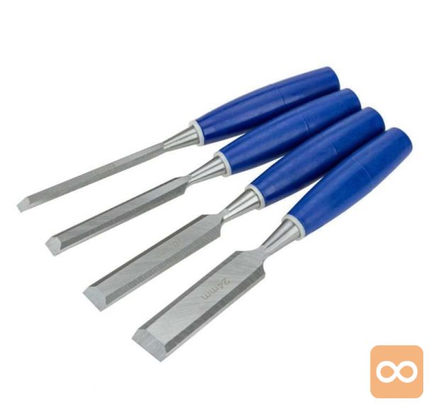 Ploščata dleta s štirimi širinami rezil – 6 mm, 12 mm, 18 mm, 24 mm in skupno dolžino 240 mm. Izdelano iz visokokakovostnega kaljenega jekla. Rezilo je opremljeno z mikro poševnico, zahvaljujoč kateri imate večji nadzor nad linijo kovanja. Ploščato dleto bo odlično za vrtanje kanalov, dolbenje utorov in vdolbin, kovanje in se lahko uporablja kot naprava za nabijanje. Ustvarjanje skulptur, lesenih predmetov, vrtnih okraskov – odslej bo to lažje, hitrejše in prijetnejše.