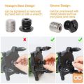 - Šestkotna zasnova osnove: mogoče jo je zategniti ali odstraniti ročno ali s ključem. Adapter z večjo površino potisne površine naredi namestitev bolj stabilno.